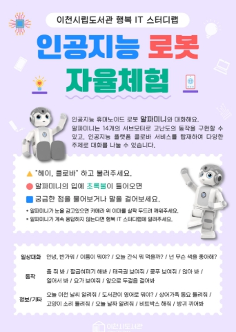 이천시립도서관 관계자는 “시민들이 부담 없이 올 수 있는 도서관에서 인공지능 기술을 자연스럽게 경험하며 미래 기술과 친숙해지는 계기가 되길 바란다”라고 밝혔다.