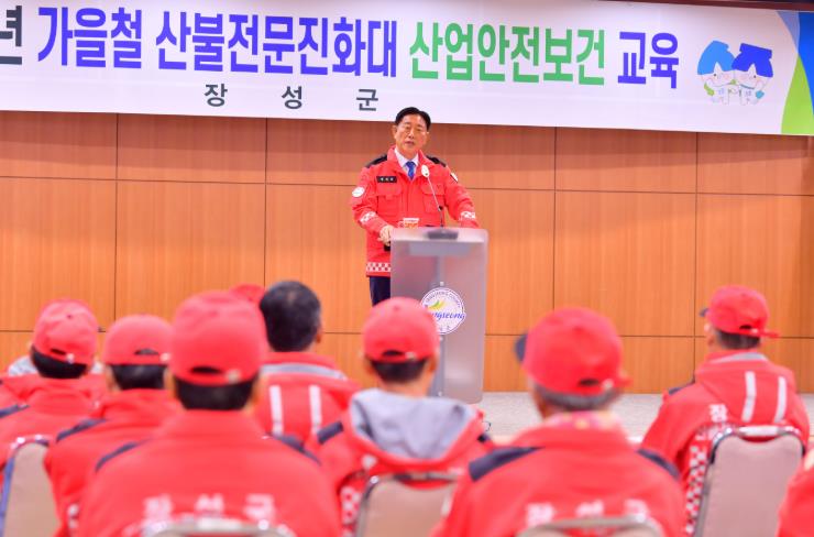 [뉴스스텝] 장성군이 지난 6일 오전 군청 아카데미홀에서 산불전문진화대원 34명을 대상으로 가을철 산업안전보건 교육을 실시했다.