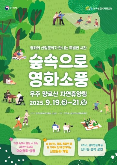 [뉴스스텝] 영화와 산림문화가 만나는 특별한 시간, “숲속으로 영화소풍”이 오는 19일부터 21일까지 무주 향로산 자연휴양림에서 개최된다.
