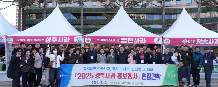 [뉴스스텝] 영천시는 10일 서울시청 광장에서 열린 ‘2025 경북사과 홍보행사’ 개막식에 사과 재배 농가 80여 명과 함께 참석해, 영천사과의 우수성을 홍보했다고 밝혔다.