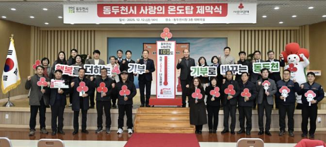 [뉴스스텝] 동두천시는 지난 12월 12일 동두천시청 대회의실에서 동두천시장을 비롯해 동두천시의회 의장 및 의원, 경기북부 사회복지공동모금회 관계자, 기업·단체·시민 등 40여 명이 참석한 가운데 ‘사랑의 온도탑’ 제막식을 개최했다.
