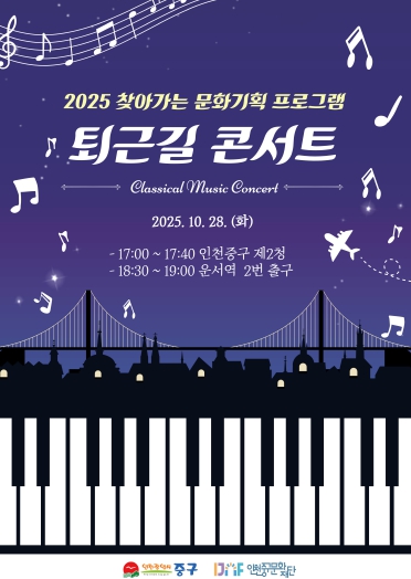 [뉴스스텝] (재)인천중구문화재단(이사장 김정헌)은 오는 28일 저녁 퇴근길 시민들을 위한 특별한 문화 행사 ‘2025 영종 퇴근길 콘서트’를 개최한다.