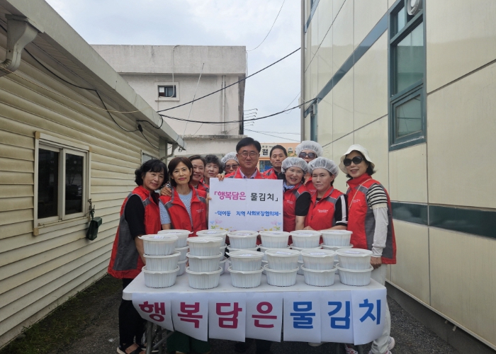 이날 지역사회보장협의체 위원들이 모여 직접 물김치를 담갔으며, 독거 어르신, 장애인, 한부모 가정 등 20여 가구에 전달했다.