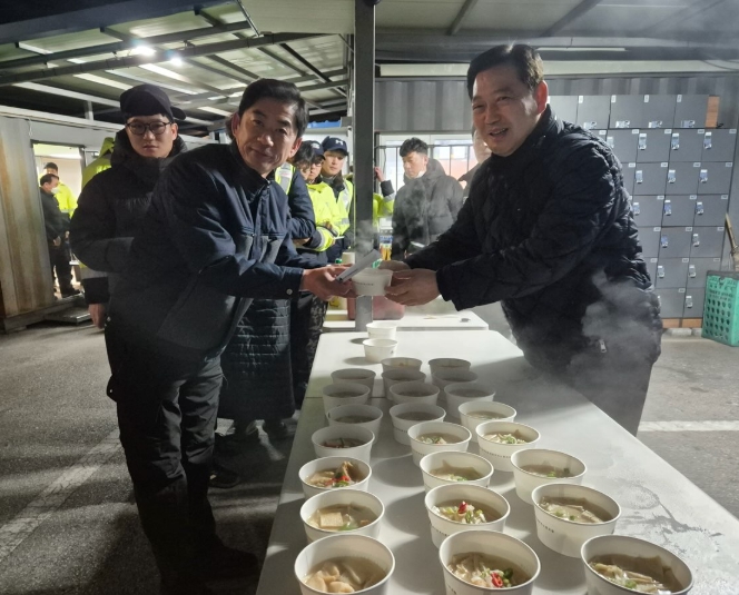 [뉴스스텝] 대구 남구의 조재구 남구청장이 병오년 새해 첫날 새벽, 앞산 큰골에 위치한 환경공무직 근무 현장을 찾아 이른 새벽부터 근무에 나선 환경공무직 직원들을 직접 만나 새해 덕담을 전하고, 떡국 한 그릇을 함께 나누며 감사의 마음을 전했다.