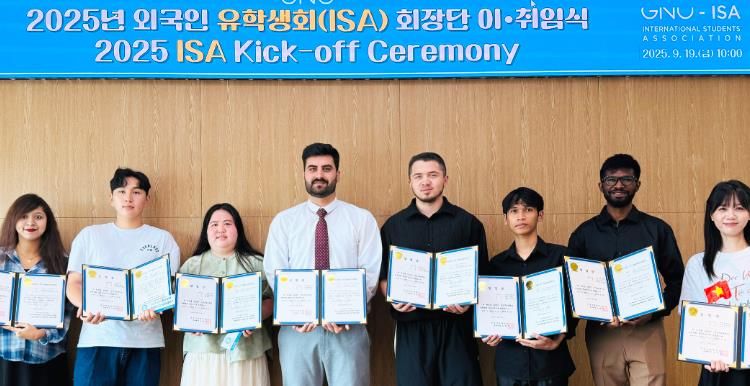 [뉴스스텝] 경상국립대학교는 9월 19일 오전 가좌캠퍼스 도서관 6층 회의실에서 외국인 유학생회(ISA, International Students Association) 회장단 이취임식 행사를 개최했다.