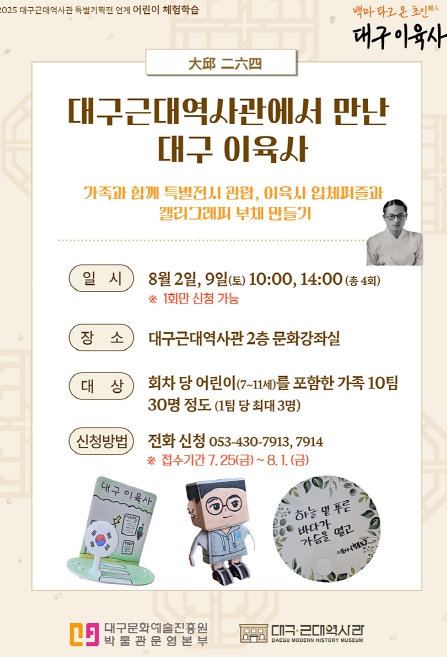 자세한 내용은 대구근대역사관 누리집과 SNS에서 확인할 수 있다.