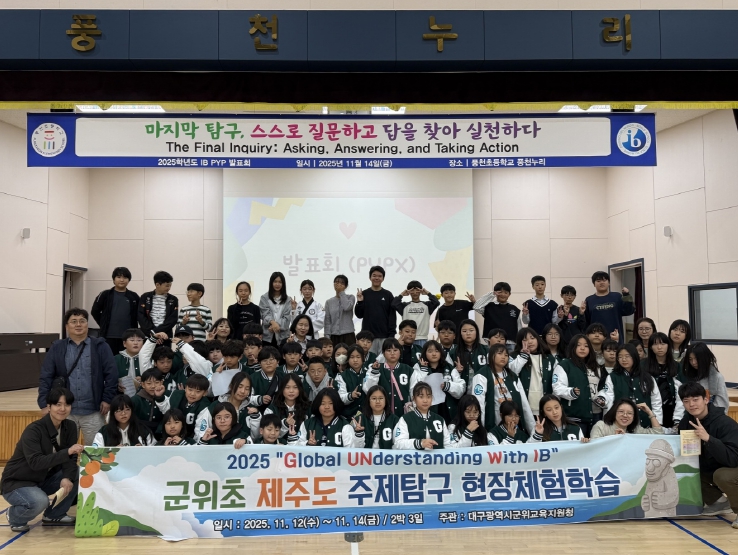 [뉴스스텝] 대구군위교육지원청은 11월 12일부터 14일까지 2박 3일간 제주도 일원에서 군위초등학교 5학년 학생 47명이 참여하는 ‘2025 Global UNderstanding With IB 주제탐구 현장체험학습’을 운영했다고 밝혔다.
