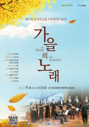 [뉴스스텝] 양주시를 기반으로 활발히 활동 중인 성악앙상블 라루체(La luce)가 오는 9월 6일 오후 3시에 경기섬유종합지원센터 대강당에서 제11회 정기공연 ‘가을의 노래(A SONG OF Autumn)’를 개최한다.