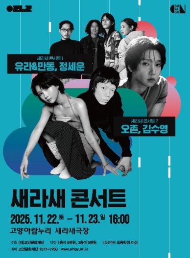 [뉴스스텝] (재)고양문화재단은 소극장 기획공연 시리즈 ‘2025 새라새 ON 시리즈’의 11월 프로그램으로, 감각적인 싱어송라이터들을 만날 수 있는 '새라새 콘서트 1~2'를 11월 22일과 23일 양일간 고양아람누리 새라새극장에서 개최한다.