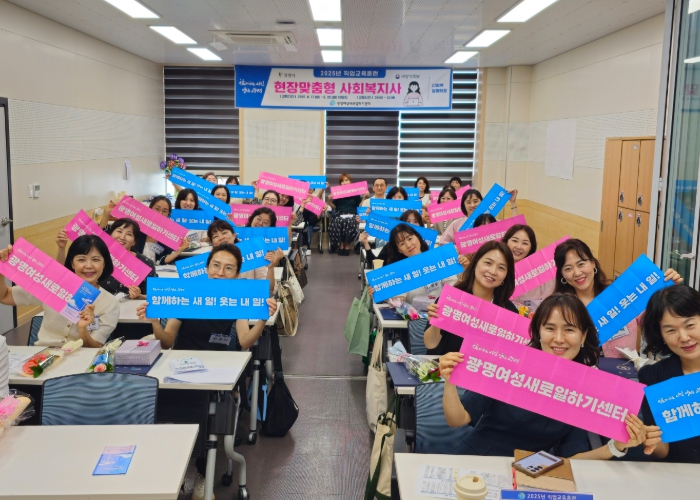 [뉴스스텝] 광명시는 26일 광명여성새로일하기센터 4층 너른교실에서 ‘2025년 직업교육훈련 현장맞춤형 사회복지사 양성과정’ 수료식과 일자리협력망 회의를 개최했다.