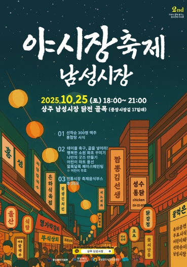 이날 행사는 남성시장 닭전골목에서 오후 6시부터 오후 9시까지 진행되며, 문화공연, 체험프로그램, 상주 식문화 소개, 닭전골목 소개, 축제음식 특별부스 운영 등 다채롭게 진행된다.