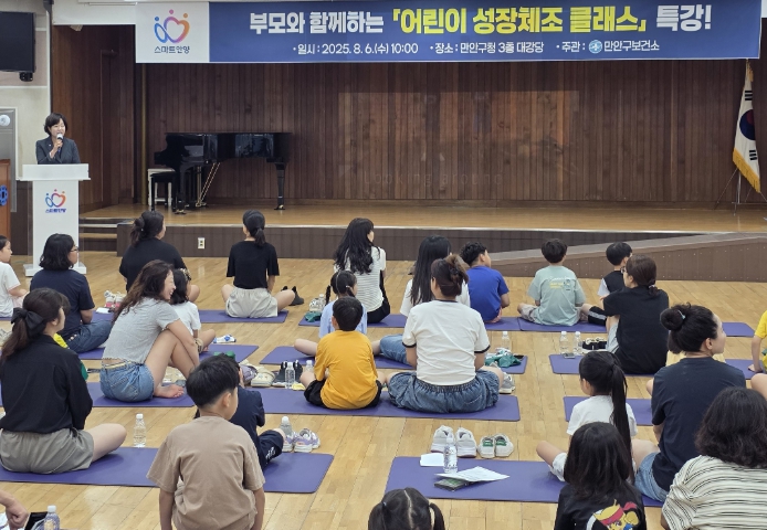 [뉴스스텝] 안양시 만안구보건소는 6일 만안구청 3층 대강당에서 어린이와 부모가 함께 참여하는‘어린이 성장체조 클래스’특강을 개최했다.