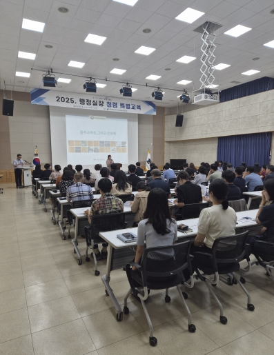 [뉴스스텝] 충주교육지원청은 6일 충주교육지원청 대회의실에서 하반기 청렴 충주교육 실천을 위한‘2025년 행정실장 청렴 특별교육’을 실시했다.