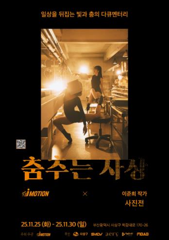 전시는 11월 25일부터 30일까지 사상구 학감대로 170-26 소재 공장 내 전시공간에서 진행되며‘춤추는 사상’이라는 주제로 지역 산업현장을 배경으로 무용수와 함께 촬영한 작품 15점이 공개된다.
