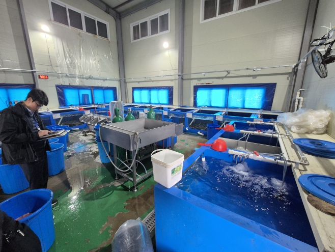 | ▲ 국내산 민물장어로 둔갑된 중국산 장어 현황판을 확인 중인 중부해경과 수품원 공무원 |