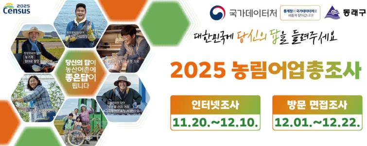 [뉴스스텝] 부산 동래구는 11월 20일부터 12월 22일까지 33일간 ‘2025 농림어업총조사’를 실시한다고 밝혔다.
