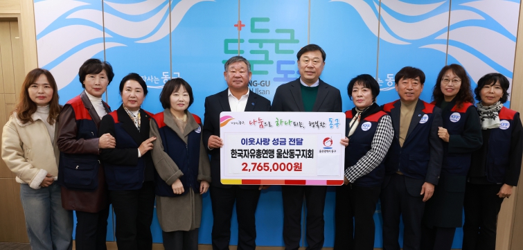 [뉴스스텝] 한국자유총연맹 울산동구지회(회장 이병태)는 11월 24일 오전 11시 울산 동구청을 방문해 이웃돕기 성금 276만 5천 원을 전달했다.