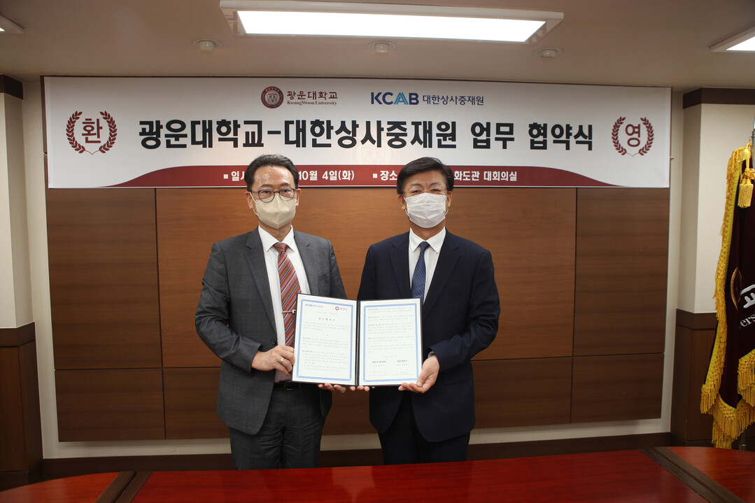 [뉴스스텝] 대한상사중재원(원장 맹수석, 이하 중재원)과 광운대학교(총장 김종헌, 이하 광운대)는 10월 4일(화) 광운대 화도관 대회의실에서 업무 협약을 맺고 양 기관의 협력 강화를 약속했다.
