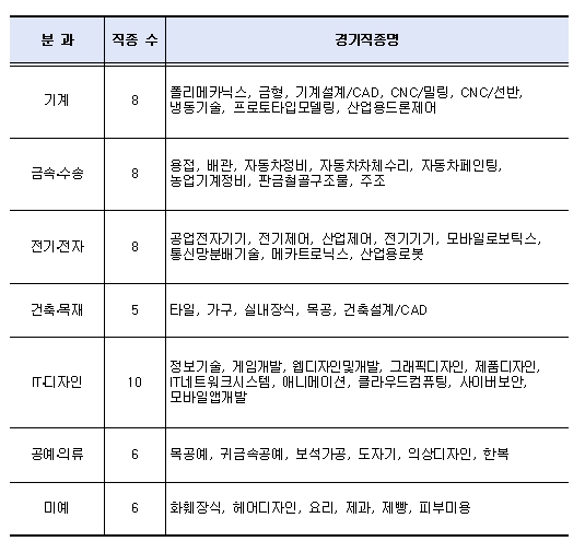 ○ 금형, 주조 등 서울시 제조업 경쟁력을 뒷받침해 온 뿌리기술 직종과 더불어 산업용드론제어, 메카트로닉스 등 미래산업 핵심 직종을 함께 구성해 총 7개 분과 51개 직종에서 참가 신청을 받는다.