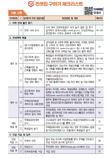 | ▲ 국토교통부 전세사기 피해예방 (안심 전세계약) 체크리스트 |