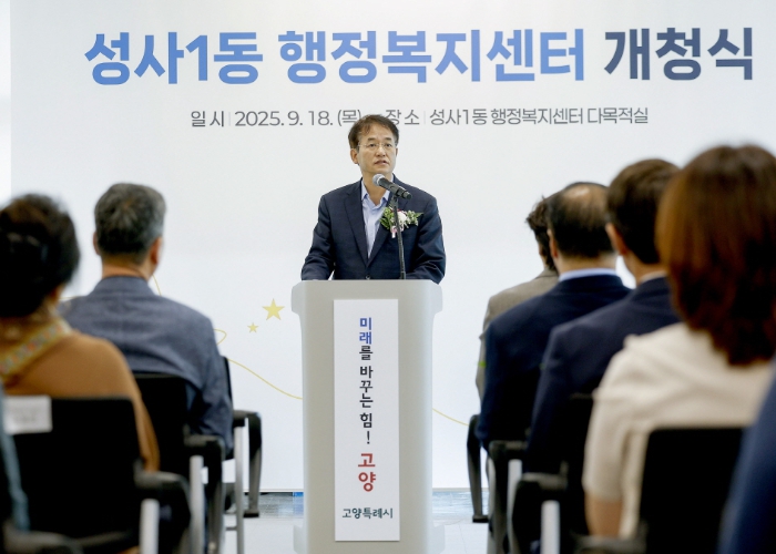 이동환 고양특례시장은 “스마트시티 이노베이션센터와 경기 북부 최초의 AI 캠퍼스가 이곳 창조혁신캠퍼스 성사에 들어설 예정인 만큼, 성사1동은 앞으로 AI 산업의 싱크탱크가 될 것”이라며 “새롭게 문을 연 성사1동 행정복지센터가 주민 생활의 중심이자 지역 발전의 거점으로 자리 잡기를 기대한다.”고 말했다.