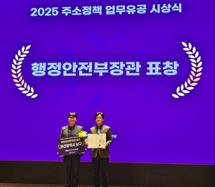 [뉴스스텝] 부산광역시 남구는 행정안전부가 주관한 ‘2025년 주소정책 업무 유공’ 분야에서 우수 기관으로 선정돼 행정안전부 장관 표창을 수상하고, 특별교부세 4천만 원을 확보했다고 밝혔다.