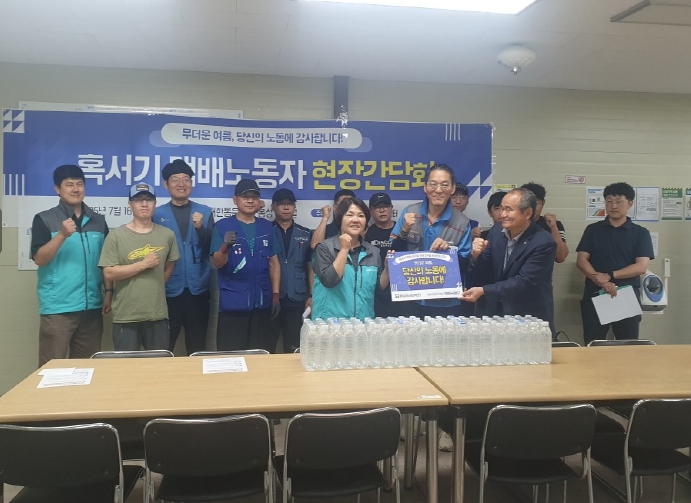 이번 행사는 무더위 속에서 일하는 택배노동자들에게 최소한의 안전조치를 제공하고, 현장의 생생한 목소리를 듣기 위해 진행됐다.