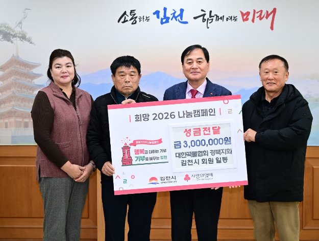 [뉴스스텝] 대한곡물협회 김천시지부(지부장 윤진채)에서는 26일 김천시청을 방문해 ‘희망2026 나눔캠페인’ 성금 300만 원을 기부했다.