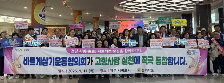 박주영 바르게살기운동 전남도협의회장은 “고향사랑기부와 전남 사랑애 서포터즈 참여는 지역을 아끼고 응원하는 마음을 실천으로 옮기는 소중한 방법”이라며 “전남도협의회도 앞장서서 더 많은 국민이 전남을 찾고, 지역 발전에 함께할 수 있도록 적극적으로 알리겠다”고 말했다.