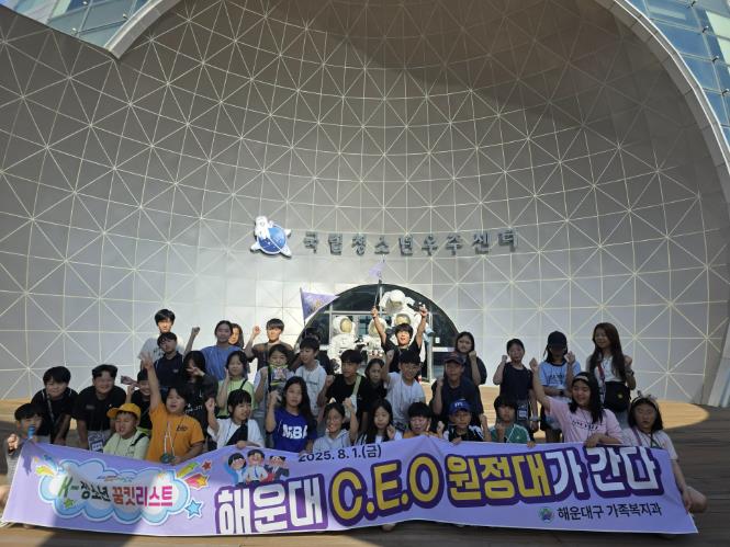 ‘해운대 C.E.O 원정대’는 고향사랑기부금으로 운영되는 특화 사업으로, C.E.O는 C-Cosmos(우주), E-Ecology(생태), O-Ocean(해양)의 약자다.각 주제별 국립청소년센터를 탐방하며, 청소년들이 자신의 ‘꿈킷리스트’를 실현할 수 있도록 기획된 연간 프로젝트다. 올해는 그 첫 번째로 ‘우주’를 주제로 진행됐다.