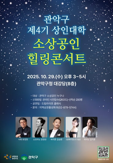 [뉴스스텝] 관악구는 오는 10월 29일 오후 3시, 구청 8층 대강당에서 관내 소상공인을 위한 힐링콘서트를 개최한다.