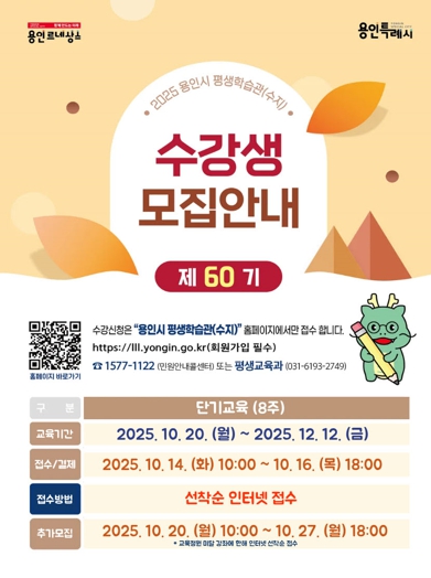 ▲ 용인특례시 평생학습관 '제60기 단기교육' 안내 포스터 |