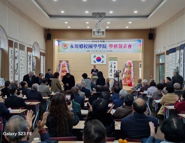 [뉴스스텝] 영천향교 국학학원(원장 이덕기)은 지난 23일 본원 3층 대강당에서 관내 단체장과 수강생 등 200여 명이 참석한 가운데 ‘2025년 정기 학예발표회’를 성황리에 개최했다.