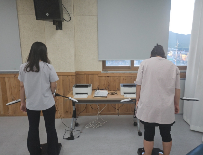 ▲ 직장인들이 신체활동에 임하고 있다. 2. 참여자들이 사업전‧후 체성분검사를 시행하고 있다. |