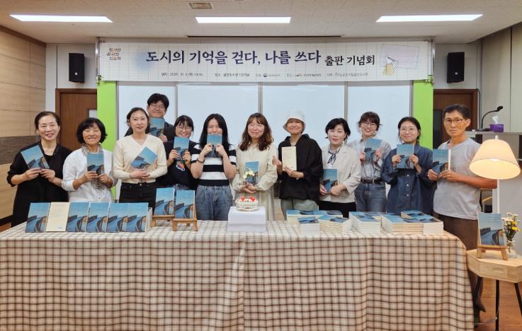 ▲ 「도시의 기억을 걷다, 나를 쓰다」 프로그램 참가자들이 『도시의 기억을 걷다, 나를 쓰다 – 우리가 아로새긴 순천의 시간』 출판기념회를 삼산도서관에서 개최했다. |
