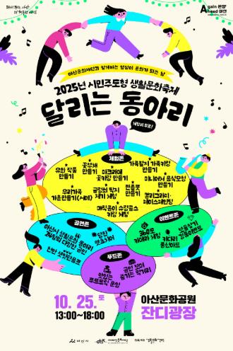 [뉴스스텝] (재)아산문화재단은 오는 10월 25일 13시부터 18시까지 아산문화공원 잔디광장에서 시민이 주체가 되어 즐기는 ‘2025년 시민주도형 생활문화 축제 '달리는 동아리'’를 개최한다.