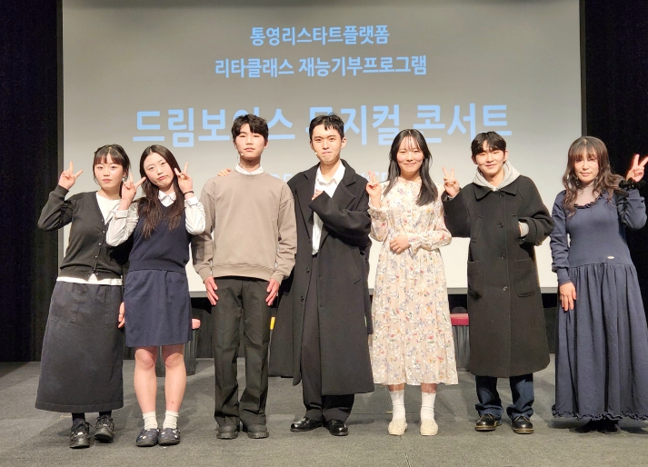 ‘드림보이스 뮤지컬 콘서트’는 지역 내 활동가 등의 재능 나눔으로 진행되는 통영리스타트플랫폼 프로그램의 일환으로, 통영 청소년 뮤지컬 극단 ‘드림보이스’ 단원 6명과 김민주 대표(꿈꾸는 뮤지컬 아카데미)의 재능기부로 진행됐다.