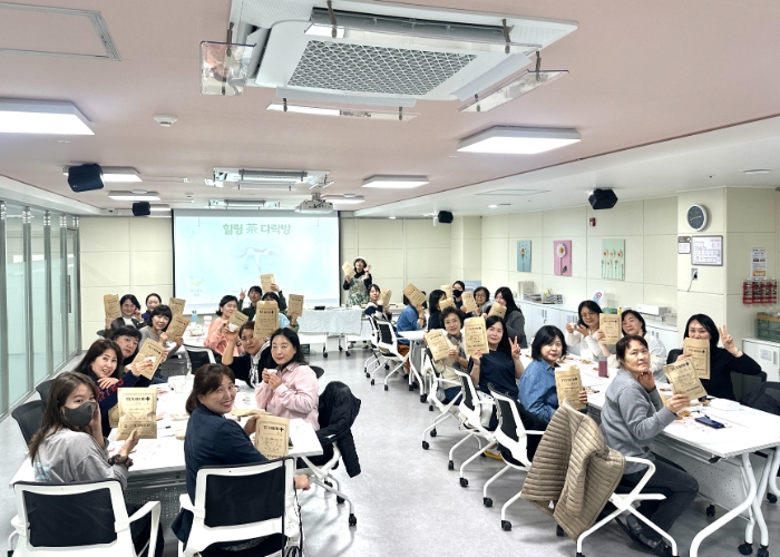 ‘힐링 티테라피’는 총 2회에 걸쳐 진행됐으며, 1차 프로그램에는 보육교사 25명이, 2차에는 원장 25명이 참여했다. 참여자들은 각자의 역할에서 오는 스트레스를 공유하며 서로를 격려하는 의미 있는 시간을 가졌다.