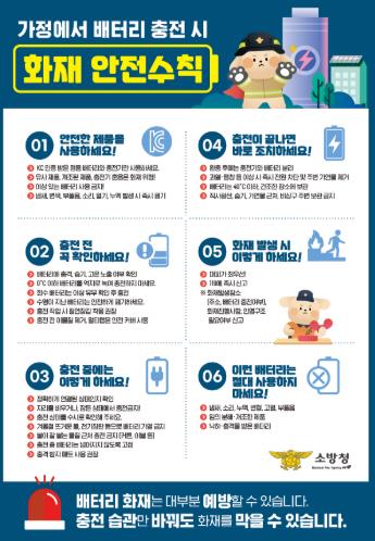 이어 “배터리 화재 발생 시에는 즉시 119에 신고하고, 전기차·개인형 이동장치(PM) 등 리튬이온 배터리 화재에는 물이 아닌 이산화탄소 또는 특수 소화기를 사용할 것”을 당부했다.