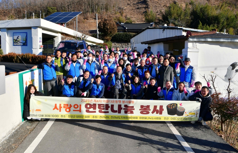 [뉴스스텝] 장성군이 훈훈한 나눔 소식을 전했다. 군에 따르면 30일 오전 (사)전남지체장애인협회 회원 등 100여 명이 연탄 1200장을 장성읍·황룡면 소재 저소득 가구 5곳에 전달했다.