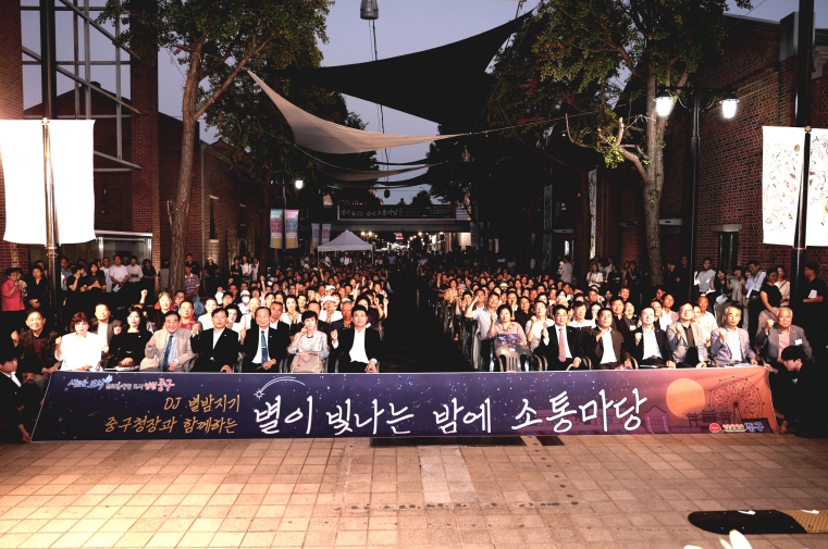 [뉴스스텝] 인천 중구의회는 9월 10일, 저녁 인천아트플랫폼 중앙광장에서 열린 '별이 빛나는 밤에 소통마당' 행사에 참석해 지역주민과 소통하며 제물포구 출범의 의미를 함께 나눴다. 이번 행사에는 이종호 의장을 비롯해 정동준 부의장, 손은비 운영총무위원장, 윤효화 예산결산특별위원장이 함께 자리해 주민과의 화합과 소통에 힘을 보탰다.