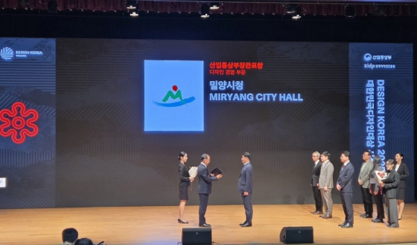 | ▲ - 경남 밀양시가 12일 서울 코엑스에서 열린 2025 대한민국디자인대상 시상식에서 디자인경영 부문 산업통상부장관 표창을 수상했다. |
