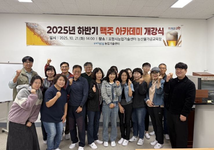 [뉴스스텝] 포항시는 지난 21일 흥해읍 농업기술센터 농산물가공교육장에서 지역산 보리를 활용한 ‘2025년 하반기 수제맥주 아카데미’ 개강식을 개최했다.
