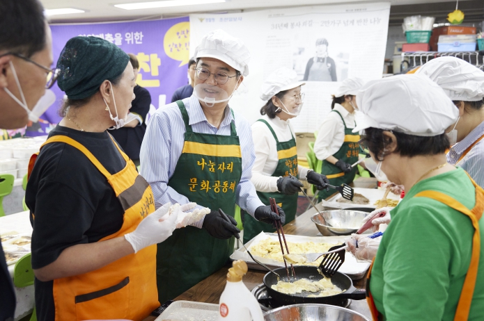 [뉴스스텝] 현장에서 도정 현안을 점검하고 도민들의 목소리를 직접 듣는 민생경제 현장투어에 나선 김동연 경기도지사가 29일 시흥시를 찾아 추석맞이 반찬 나눔 봉사활동을 진행했다.
