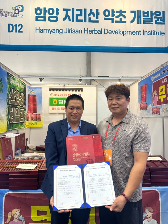 [뉴스스텝] 경남 함양농협에서 운영하는 지리산약초개발원이 2025제천국제한방천연물산업엑스포에서 해외 기업과 연달아 수출협약을 체결하며 주목받고 있다.