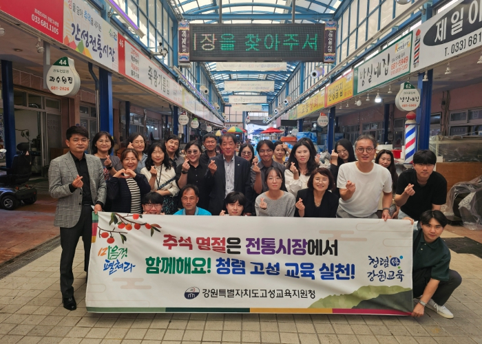 [뉴스스텝] 고성교육지원청은 추석 명절을 앞두고 9월 29일 간성전통시장과 거진전통시장에서 청렴 홍보지 배부와 함께 ‘청렴+(Plus) 나눔 추석 명절 전통시장 장보기’ 캠페인을 실시했다.