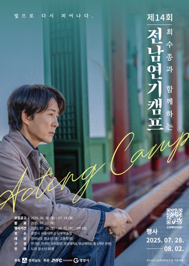 [뉴스스텝] 전라남도와 (사)전남영상위원회가 ‘제14회 최수종과 함께하는 전남연기캠프’ 참가 학생 50명을 14일까지 모집한다.