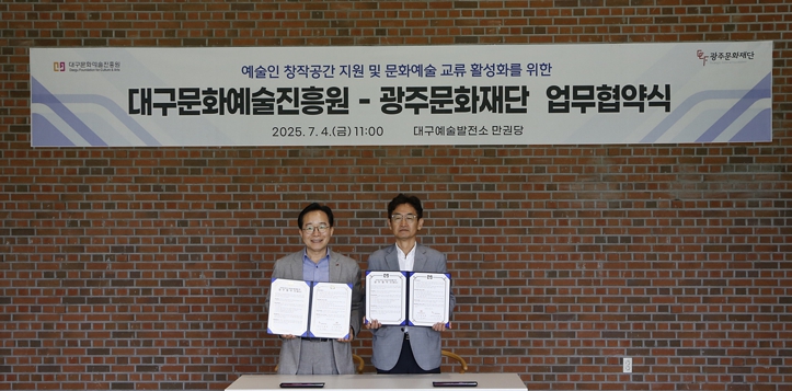 노희용 광주문화재단 대표이사는 “이번 협약은 광주와 대구의 창작 역량이 시너지 효과를 낼 수 있는 좋은 기회”라며, “지역의 경계를 넘어 함께 성장할 수 있는 예술 환경을 만드는 데 최선을 다하겠다”고 전했다.