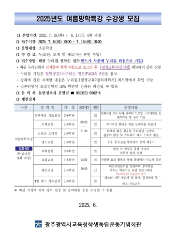 ▲ 광주시교육청학생독립운동기념회관, 여름방학 특강 운영 모집 안내문 |