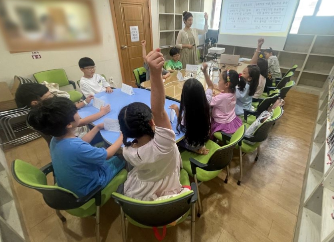 이번 수업은 2025년 평생학습센터 프로그램 운영지원사업의 일환으로 매주 수요일 2개반(1시~2시, 2시~3시)으로 나누어 추진되며, 지역 아동들에게 독서에 대한 흥미를 유발하고 건강한 독서문화 정착에 기여할 예정이다.
